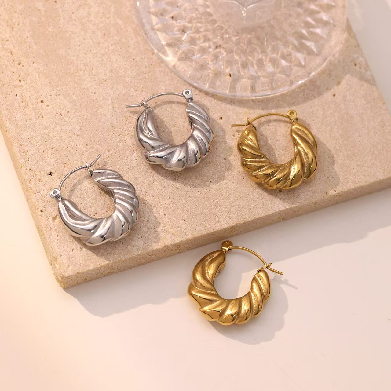 French Vintage Popular Fried Dough Twists Stainless Steel Fashion Luxury Earrings